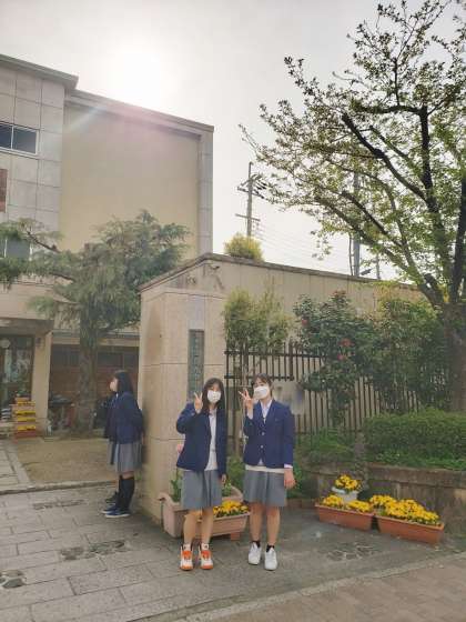 校門の前には