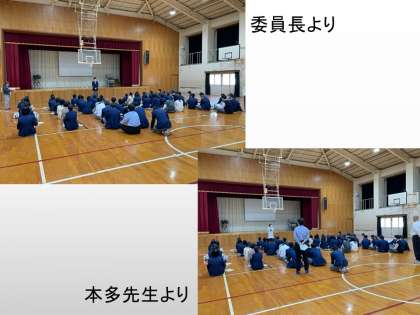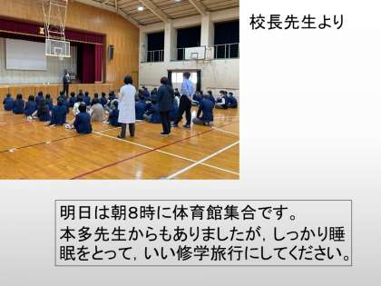 学年主任・生活係・修学旅行委員会委員長・本多先生・校長先生から話がありました。
