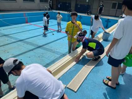 プール清掃 公開日 2022/05/25 更新日 2022/05/25 学校の様子 部活動前に男子運動部員たちがプール掃除をしてくれました。 皆さんのおかげで,みるみるきれいになりました。 ありがとうございます。