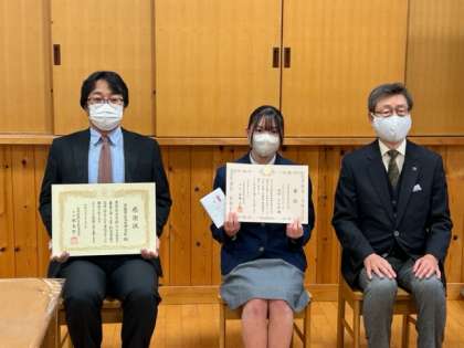 また、学校としても、その取り組みに感謝状をいただきました。代表して社会科の先生に授与していただきました。長年の取り組みが評価された証です。歴代の先生方の取り組みが受け継がれての受賞です。多くの先生方に感謝いたします。