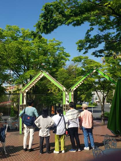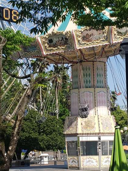 アトラクションで 水をかぶってきました! と笑って話してくれました。 ブランコも 風をきって回っています!