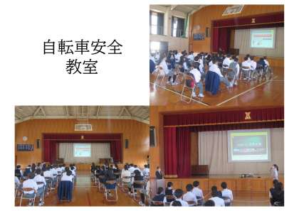 講師の方をお招きして体育館でスライドを見ながら話を聞いていました。暑い中でしたが、窓を全開にし、扇風機を回して授業を受けました。