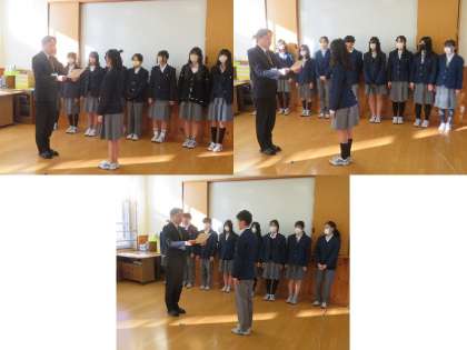 今回は生徒会本部から話があった後に、2学期にいただいた賞状の伝達表彰がありました。今回は、いつもに比べてたくさんの方々が表彰され、皆さんの活躍が多方面で認められ、表彰された結果でした。様々な分野で得意な部分を発揮できたことは、大変素晴らしいことだと思います。
