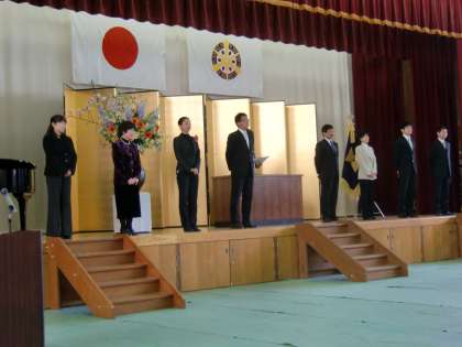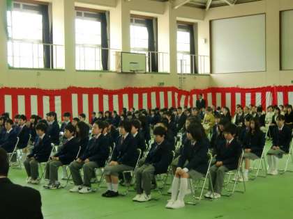 今年の新入生54名は、2・3年生の先輩や来賓・保護者の皆様の拍手の中、堂々と胸を張って会場に入場してきました。その一人一人の顔には、「今日から中学生だ!」という自覚と自信が表れていました。
