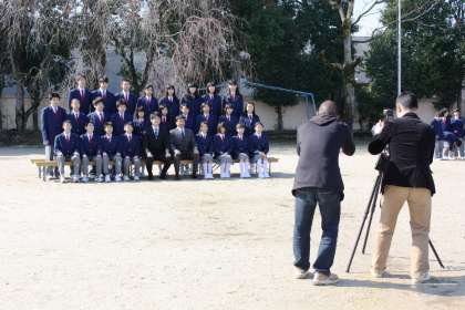学級写真撮影「はい、チーズ!」 公開日 2012/04/06 更新日 2012/04/06 学校の様子 今朝の最低気温は5.6度、冬に逆戻りしたかのような気温です。昨日の入学式の緊張感と興奮がまだ残っている1年生は、1時間目に学級写真を撮影しました。新しい学校、新しいクラス、新しい友達、新しい制服、新しい先生方・・・新しいものばかりですね。まずは自分の一番素敵な笑顔で、「はい、チーズ!」出来上がりが楽しみです。