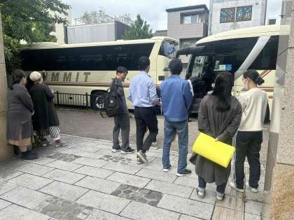 保護者の方にも見送っていただき、出発します。 生徒たちは元気にしています。