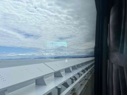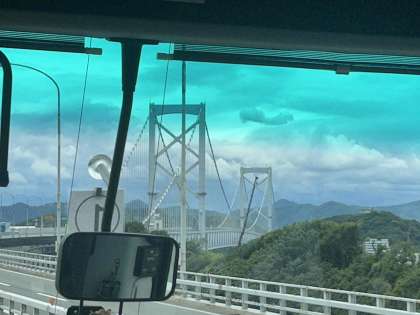 バスはイングランドの丘を出て高速道路を走り、大鳴門橋を渡ります。