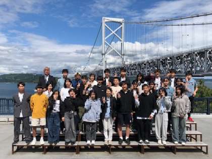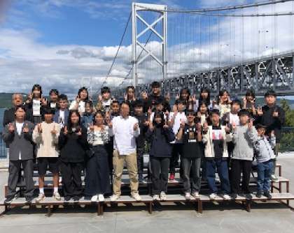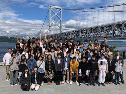 大鳴門橋をバックに学級と学年の記念写真を撮りました。