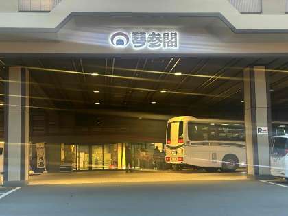 1日目の宿に到着しました。 たいそう立派なホテルです。 この後は入室後、お風呂に入って夕食です。