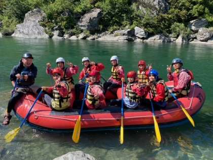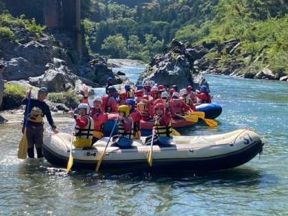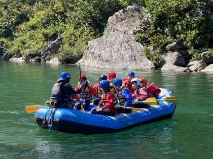 先程ラフティングが始まりました。 快晴でとっても気持ちいいです!