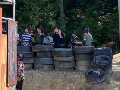 ガンバトルはサバイバルゲームのような感じですが、玉は安全なスポンジです。