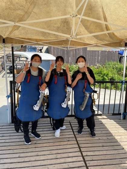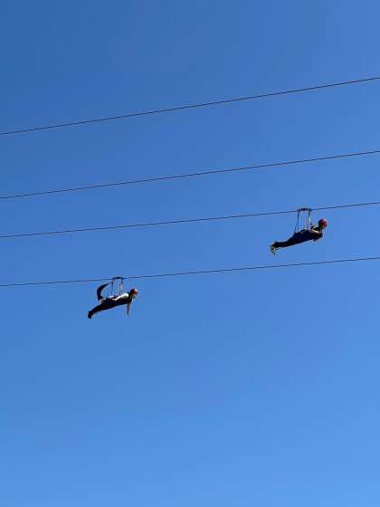 日本最長&最速のジップラインで鳥になった気分を味わっています。