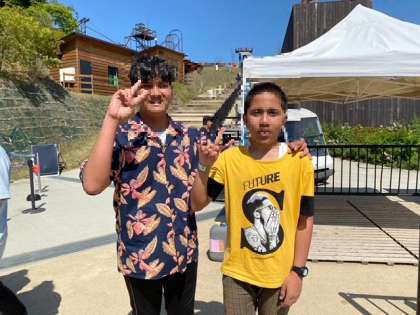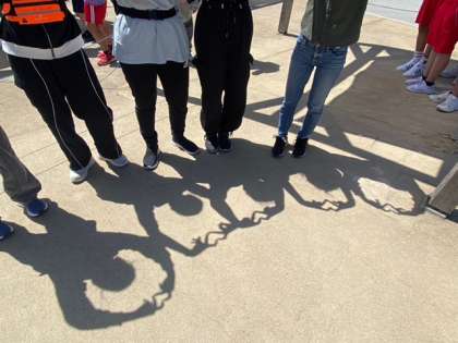 影を作って楽しんでいる女子もいます。