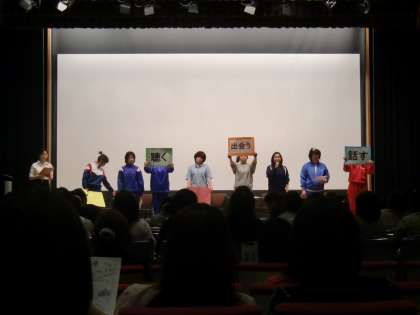 どの支部も工夫を凝らした内容で、歌あり、寸劇あり、コントあり、クイズあり、手話ありの楽しい内容で、笑いと涙と感動!の2時間余りでした。特に、お母さん方が各学校のジャージをを着て、中学生になりきって演技?した寸劇には、会場から大爆笑と大声援が起こりました。