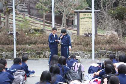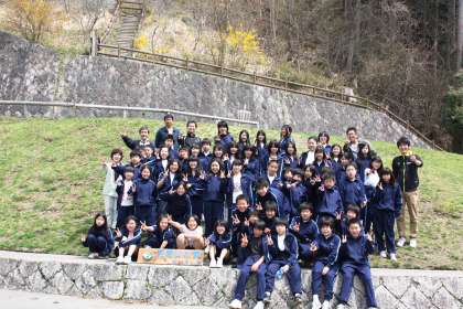 楽しかった1泊2日の宿泊学習もいよいよ終わりの時を迎えました。お世話になった山の家の先生方に感謝の気持ちをこめてお礼の言葉と送りました。本当にありがとうございました。最後に全員の記念写真です。ハイポーズ!