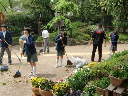 玄関前のプランターを美化委員が整理!