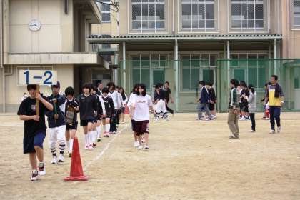 6時間目終了後、開会式の行進練習をしました。各クラブから選りすぐられた約60名の代表が参加しました。行進方法の説明を聞き、何度も練習をした後、本番さながらに、「若い力」の音楽に合わせ、堂々とした行進をしました。当日は、今日の練習の成果を発揮し、さらにワンステップアップして、烏丸中の代表として、気持ちを込めた行進をしてもらいたいです。胸を張り、前を見つめて元気よく、頑張れ烏丸中学校!
