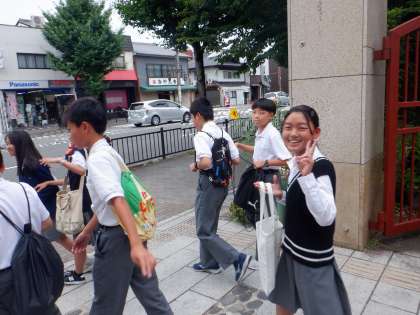 本日の3・4限目に、1年生は総合的な学習の時間の中でフィールドワークを行いました。自分たちの住んでいる地域の魅力を発見し、未来に向けて大切なことを見つけ出すことを目的として、フィールドワークへと出発しました。歴史・観光・防災・環境などの分野にわかれ、班ごとに訪問しました。