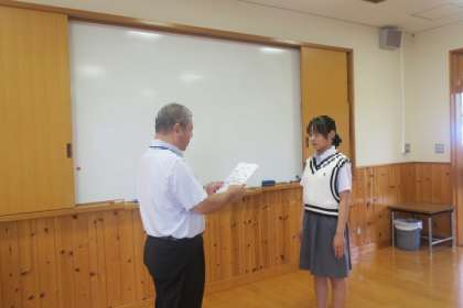 1学期終業式 公開日 2024/07/19 更新日 2024/07/19 学校の様子 本日、1学期終業式を行いました。まず、先日開催してくれました「謎解き」の優秀グループの表彰を生徒会の皆さんが行ってくれました。がんばったグループのみなさん、よかったですね。 次に、1学期にいただいた賞状の伝達表彰がありました。健康な歯の表彰、水泳競技、放送コンテストなど、今回もたくさんのみなさんが表彰されました。おめでとうございます。
