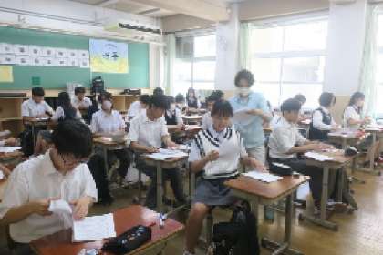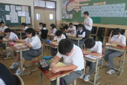 始業式のあとの学活では、夏休みの思い出や2学期の取組、合唱コンクールに向けてなど、久しぶりに会った仲間と話したり自分の目標を考えたりと楽しい時間を過ごしていました。夏休み明け確認テストもありましたが、夏休みの成果を発揮することはできましたか?