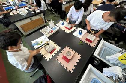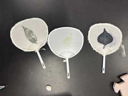 3組科学センター学習 公開日 2024/08/28 更新日 2024/08/28 学校の様子 3組のみなさんは科学センター学習で、葉をたたき染めした「うちわ」のデザインに挑戦しました。学校に戻ってきたときに自分たちでつくったその「うちわ」も見せてくれました。色やデザインもさまざまで、頑張って考えて作りましたね。