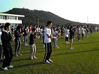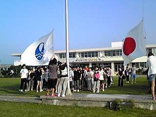 二日目スタート!朝の集い 公開日 2012/05/11 更新日 2012/05/11 3年修学旅行 おはようございます。晴天の朝から二日目が始まりました。昨夜あまり寝られなかった人もいたようですが、朝の集いには全員元気に参加しました。朝の集いには、同宿の沖縄の高校もいっしょでした。国旗掲揚、ラジオ体操の後、学校紹介をしました。今日は楽しみにしていた海洋研修です。思いっきり沖縄の海を満喫します。