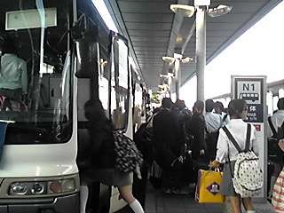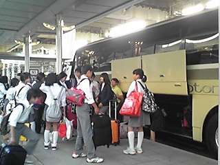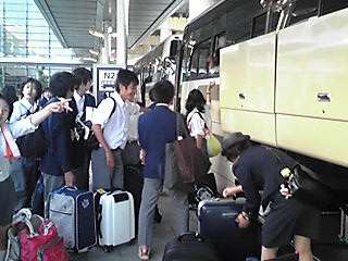 関空からバスに乗り、いよいよ出発の予定です。三ケ所に停車して、学校には、7時30分頃に到着の予定です。