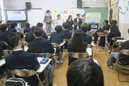 中学2年生のみなさんのプレゼンテーションの後は、海外の学生の方から食べ物や年末年始の過ごし方などの国の情報や、今何を勉強しているのかなどについても英語でプレゼンテーションをしていただきました。