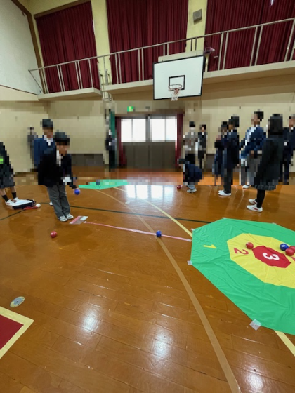 まずはじめに、アイスブレーキングでボッチャを行いました。初めて顔を合わせる仲間との交流は、初めこそ緊張した様子でしたが、すぐに打ち解けることができ、和気あいあいとした雰囲気でプレイすることができていました。各校の発表においては、烏丸中学校で行っている生徒集会や3DAYSの縦割りで行った謎解き3DAYSについて発表しました。分散会でも、活発な意見の交流が見られ、「この取組は私たちの学校にも取り入れられそう」と話してくれていました。