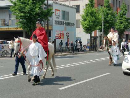 御神輿と、馬と・・・!すごい行列です!御霊祭−2 公開日 2012/05/18 更新日 2012/05/18 学校の様子 午後からの神輿行列は佳境に入りました。多くの方が神輿を引き、祭りを盛り上げます。素晴らしい馬に乗った宮司さんも。歴史ある祭だから、毎年5月18日に日を固定してもあれだけ多くの方が参加されるのですね。夕方まで、お祭りは続きます。 生徒の皆さんは、定期考査前でもあります。お0足ならないうちに帰宅しましょう!