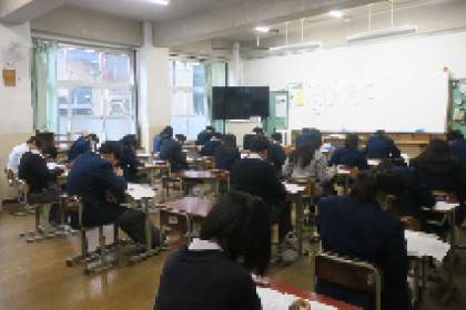 3年生 第5回定期テスト 公開日 2025/01/22 更新日 2025/01/22 学校の様子 本日より3日間、3年生は第5回定期テストです。 3年生にとっては中学校生活での最後の定期テストとなります。 3年生のみなさんはいつも以上に粘り強く問題に取り組んでいる姿がありました。 テストは金曜日まで続くので、この頑張りを続けてほしいと心から願っています。 3年のみなさん、体調に気をつけて、自分の力を十分に発揮できるように頑張ってください!