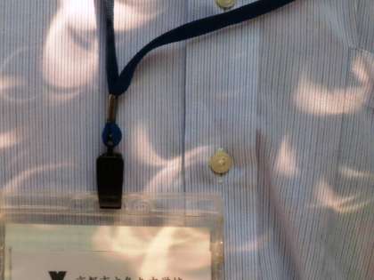 教頭先生のカッターシャツにも、日食マークの柄ができています。(下の写真)
