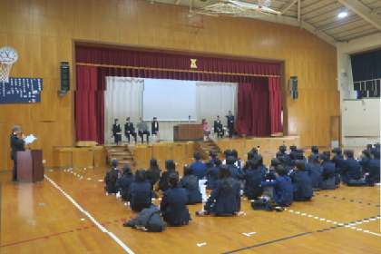 令和6年度 離任式 公開日 2025/03/28 更新日 2025/03/28 学校の様子 本日、離任式が行われました。 この春、9名の教職員が退職・異動となられました。 都合がつかずに離任される全員の教職員の出席とはなりませんでしたが、温かい雰囲気の中、離任式が行われました。 離任式では出席した離任教職員から、生徒の皆さん、卒業生の皆さん、保護者の皆様、地域の方々にお別れの挨拶や感謝の言葉、そしてメッセージをお話されていました。