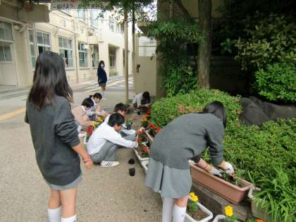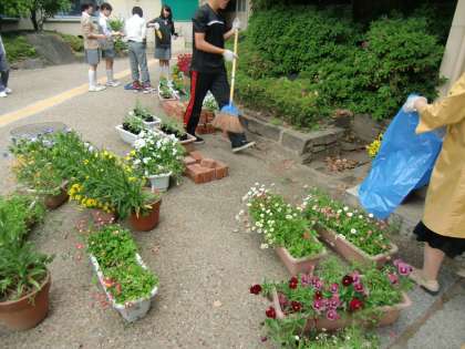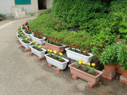 今日の昼休みに、美化委員会が中心となり、園芸ボランティアの先生とう一緒に、夏の植物への植え替え作業を行いました。マリーゴールド、サルビア、ブルーサルビア、これから夏にかけてその美しい姿で楽しませてくれることでしょう。我々人間と同じように、植物も衣替えの季節です・・・!
