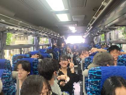 バスレクが始まりました。 絵しりとりをしながら高速道路を走行中です。