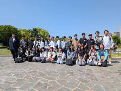 平和記念公園に到着しました。学年写真とクラス写真を撮りました。
