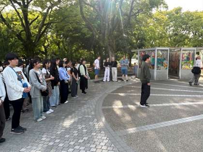 平和学習を終え、バスに乗り、宿へ向かいます。