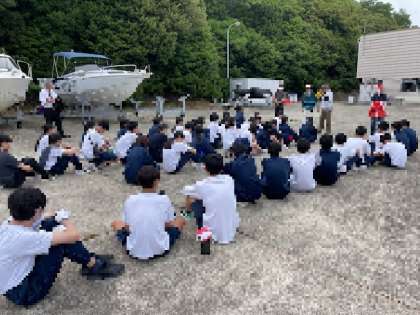 カッター体験の前に、説明を聞いています。