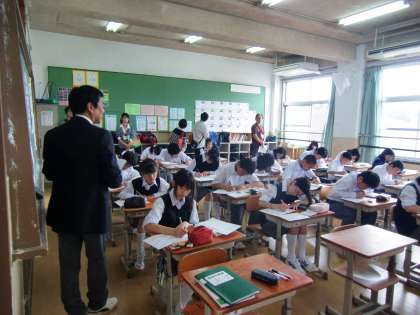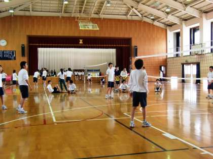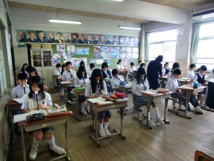 授業参観の様子です。みんな一生懸命授業を受けています。 上−1年国語 中−1年音楽 下−2年体育
