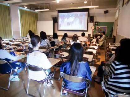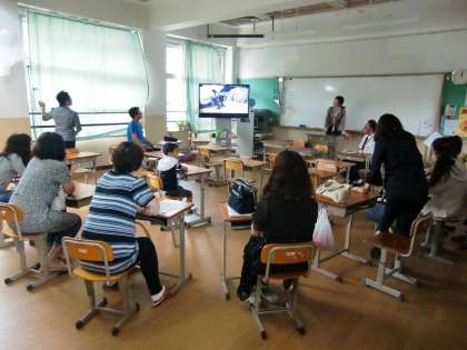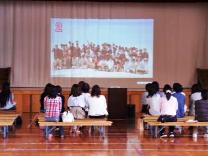 教育課程説明会の後、学年別懇談会を行いました。今回は、生徒たちの学校生活の様子の説明と、1年生は花背山の家宿泊学習、2年生はファイナンスパーク学習、3年生は沖縄修学旅行の様子を、写真やビデオで振り返りました。特に3年生は、修学旅行の3日間をまとめた30分の超大作を放映しました。どの学年も生徒たちの活動の様子がよくわかっていただけたのではと思います。