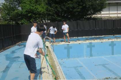 本日放課後に、2・3年の男子運動部員のみなさんがプール掃除をしてくれました。