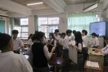 今回の生徒会のみなさんが企画してくれた「クイズラリー」では、3学年が学年の垣根を越えた縦割りグループごとに分かれ、各教室でクイズに答えていきました。グループの中では3年生が先輩として後輩を引っ張っていってくれていました。