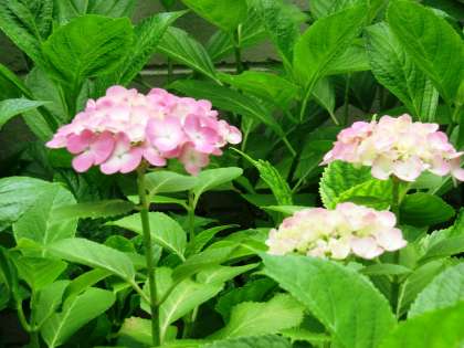 アジサイといえば、様々な色合いが特徴です。一日で花の色が微妙に変化することから、「七変化」とも呼ばれています。一般に「土壌が酸性ならば青、アルカリ性ならば赤」と言われていますが、土壌の pH (酸性度)は花色を決定する要因の一つに過ぎません。花弁(正確には装飾花)に含まれる補助色素によっては青になり得ない、またはなり難いものがあるほか、pH は地中のアルミニウムがイオン化する量を左右する要因に過ぎないため、仮に酸性土壌であっても地中のアルミニウムの量が少なければ花が青色になることはありません。また、初めは青かった花も、咲き終わりに近づくにつれて赤みがかかっていきます。一概にすべてのアジサイに当てはまる性質とは言えませんね。