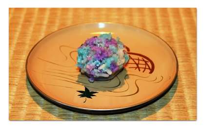 下の写真は、アジサイを模した、この季節ならではのお菓子です。とてもきれいですね。