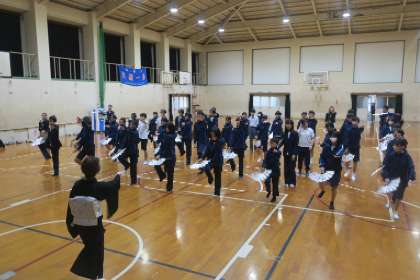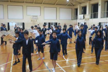 そして、後半には実際に舞の仕方を教えていただき、短い曲に合わせてみんなで舞いました。私たちになじみのあるダンスとは異なるので、最初は舞うのに苦労している生徒のみなさんもいましたが、生徒のみなさんは覚えるのがはやく、最後にはみんなで心も1つにして舞うことができました。