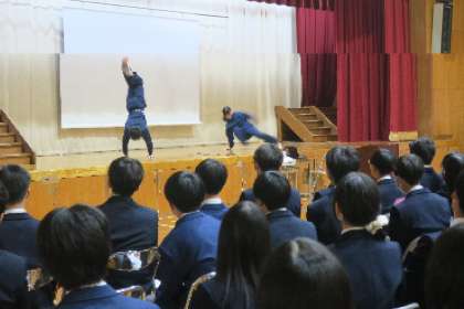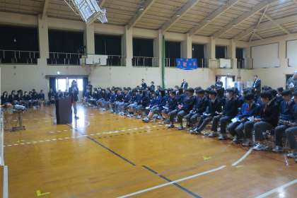 全校生徒が一斉に集まって取組を行うことができることは烏丸中学校の良さであります。
