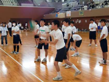 6月15日(金)に、京都府立体育館で「第38回合同球技大会」が開催され、烏丸中の3・4組が参加しました。午前中はバレーボール、午後はドッジボールが行われ、他校の仲間たちと一緒に、さわやかな汗を流し、楽しい1日を過ごしました。