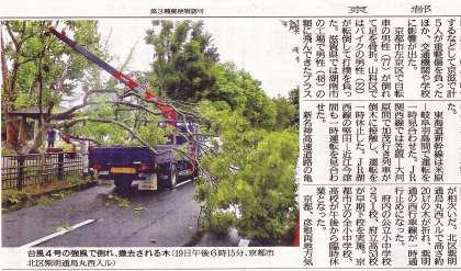 昨日は台風4号が日本列島に上陸しました。6月としては8年ぶりの上陸ということでしたが、各地に被害が出ました。学校近くの紫明通烏丸西入ルでは、高さ約20mの木が折れ、紫明通りが一時通行止めとなったようです。人的な被害がなくて、本当によかったです。