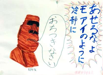 好評?の校内ポスター紹介です。今回は学校生活の安全にかかわるポスターを2作品紹介します。どちらも見ていて微笑みを浮かべますね。