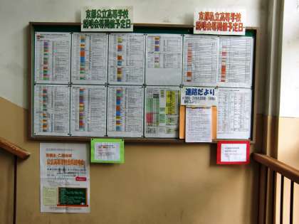 廊下や階段のの踊り場に、進路情報が掲示されています。高等学校の情報に加え、今は夏休みを中心に行われる、スクールガイダンスのお知らせが、とてもわかり易くまとめられています。3年生だけでなく、1・2年生も今から様々な進路情報に注目することは、自分の進路決定までの大切なワンステップとなります。休み時間などで階段や廊下を通りかかった時、是非注目してください。
